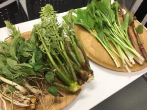 下の写真の紙コップの中身は、イタドリを中心にした野草のサラダです。