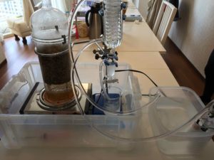 さて、こちらが蒸留実験装置です。